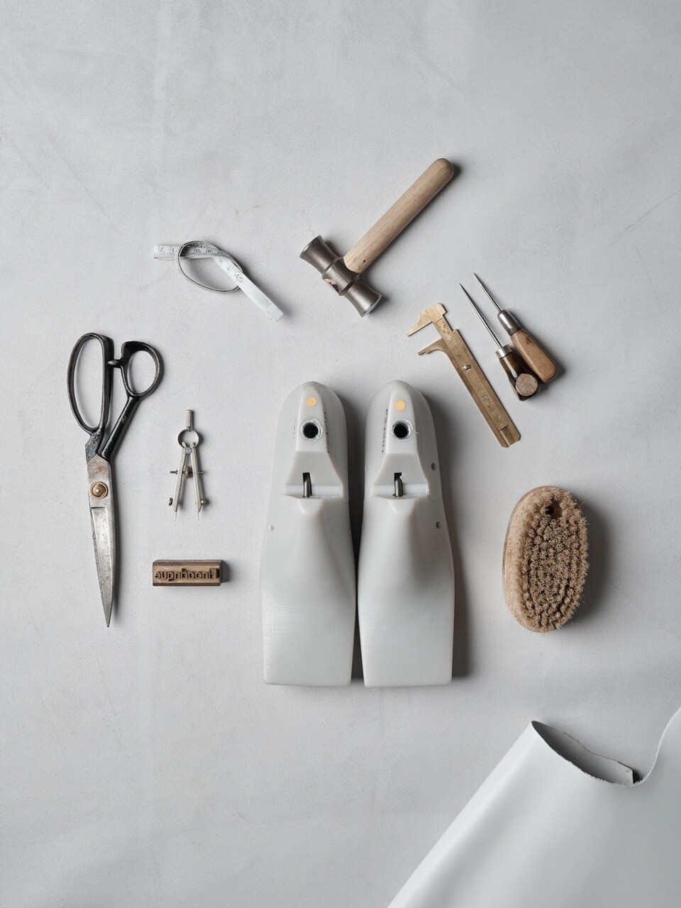 The factory is a production floor, with roots that trace back to Yeom-cheon bridge in the 1990s. It is widely recognized for it’s nearly 30 years of unmatched ability to bring complex designs to life within Korea’s handmade shoe industry. Passed down from generation to generation, It is operated today by Lee’s husband and partner technician, Han-jun Kim. Now nestled in the heart of Seongsu-dong’s shoe-making district, the beloved factory is as much a part of the Finoacinque family as the twelve artisans who craft within it.